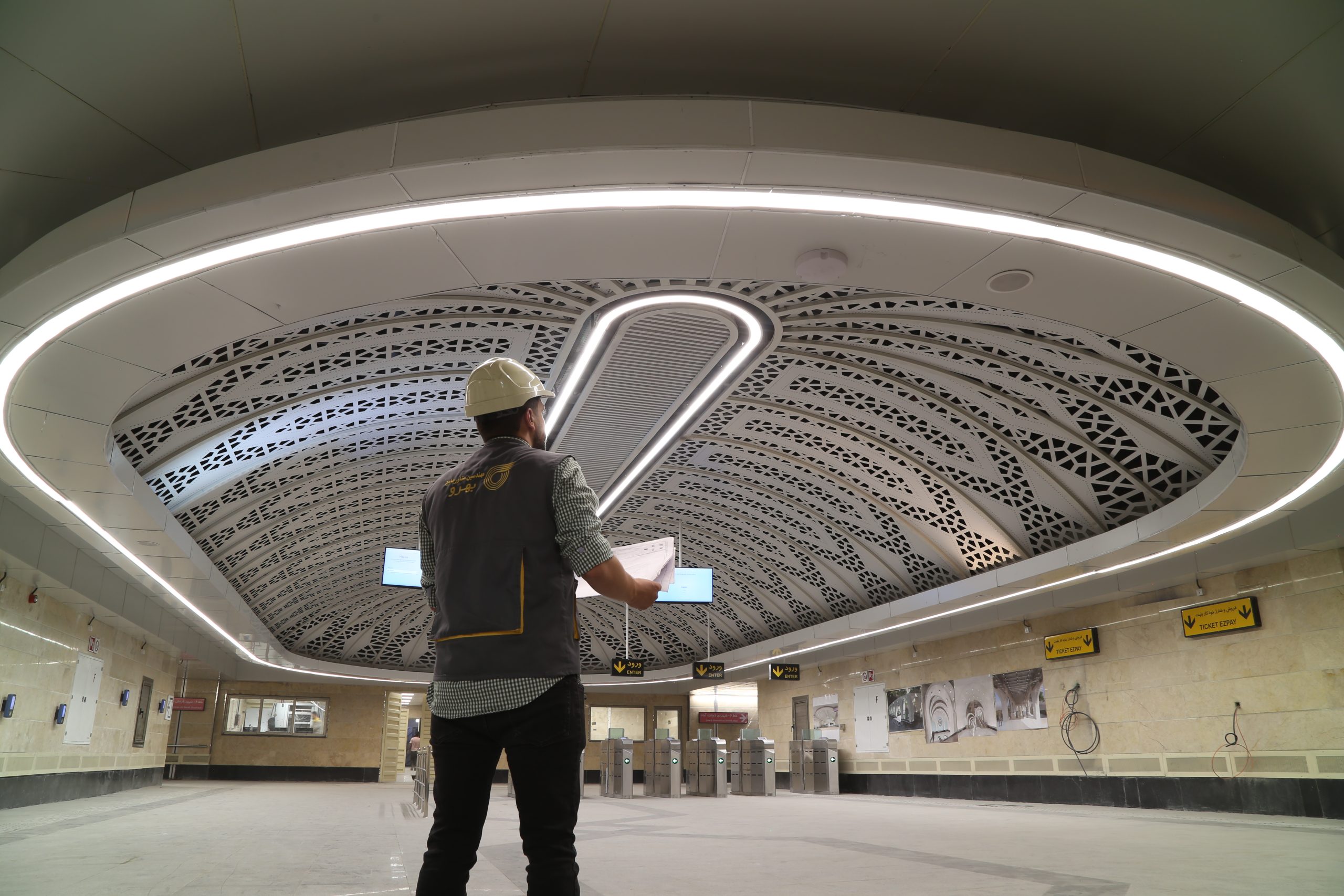 ساخت این ایستگاه در عمق قابل توجهی از سطح زمین انجام شده و زیربنای تقریبی آن حدود یازده هزار مترمربع است؛ برای اجرای سازه‌ای آن 101 هزار مترمکعب خاکبرداری، حدود ۳۶۰۰ تن آرماتوربندی و نزدیک به ۲۷ هزار مترمکعب بتن‌ریزی انجام شده است. در داخل ایستگاه حدود ۶۰۰۰ مترمربع سنگ‌کاری اجرا شده تا علاوه بر رعایت اصول ایمنی، جلوه‌ بصری مطلوب نیز تأمین گردد. طول این ایستگاه به 140 متر می‌رسد و در مساحتی بالغ بر 12 هزارمترمربع زیبنا احداث شده است. از وجود دوازده دستگاه پله‌برقی و طراحی ورودی‌ها به‌گونه‌ای صورت گرفته که ظرفیت جابه‌جایی مسافران در مرکز شهر را پاسخگو باشد.